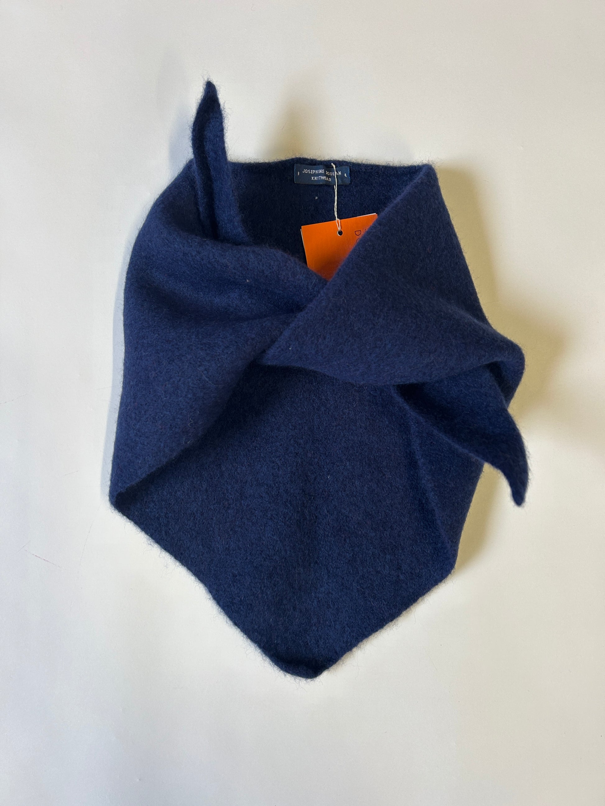 Beautifully simple triangle neckerchiefs made by our friend and local designer Josephine Doolan. Knitted using the cosiest merino lambswool in a deep royal blue - perfect for popping on when there's a chill, or to elevate any outfit!