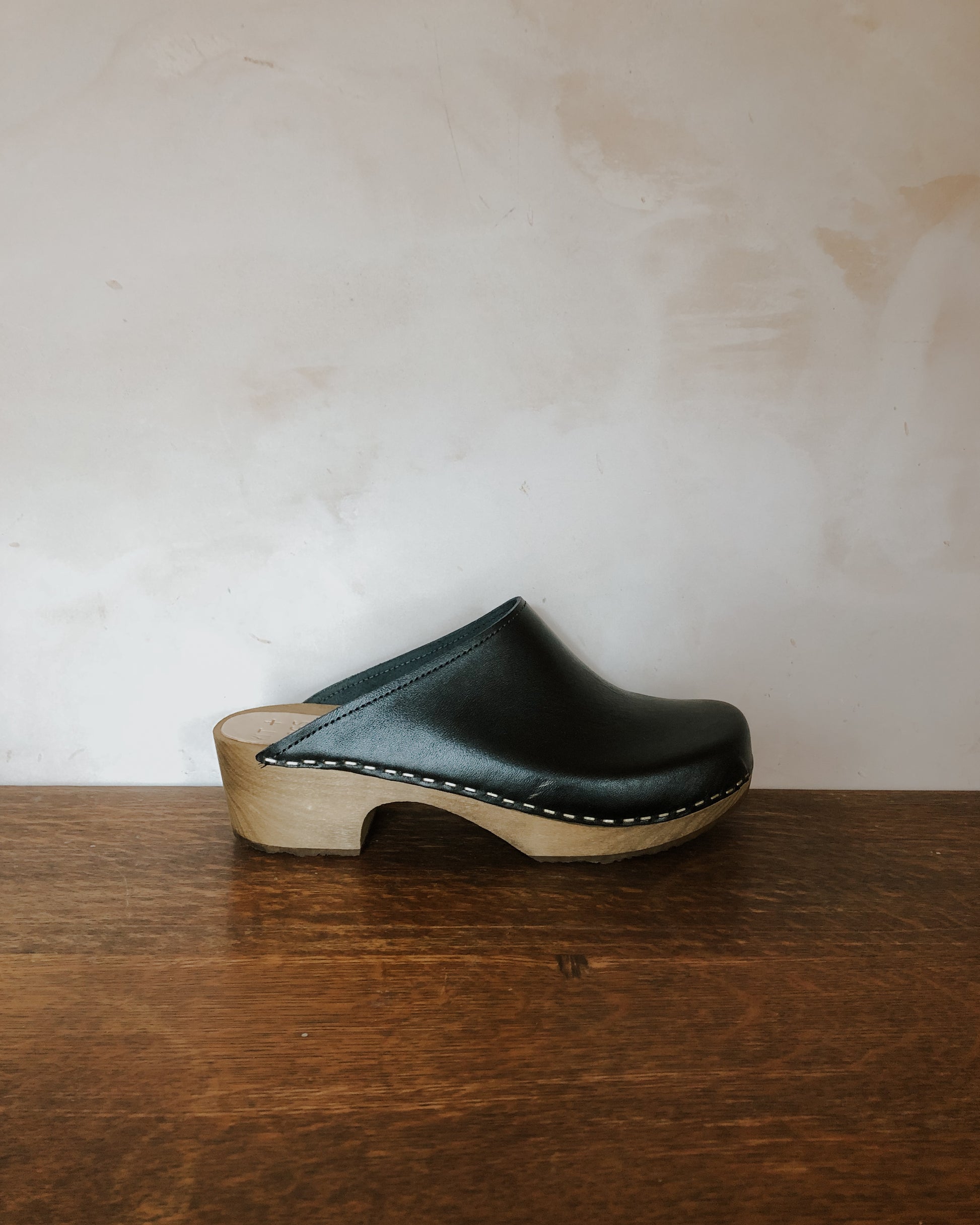 Onyx Mini Klassisk Clog with Natural Wood Heel